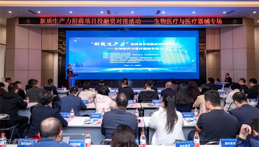 2024年10月18日,山西省投资促进局、晋中市人民政府主办,山西转型综合改革示范区晋中开发区、山西股权交易中心、晋中市招商引资服务中心承办,新质生产力招商项目投融资对接活动——生物医药与医疗器械专场在晋中开发区省级数字化转型促进中心成功举办。省直相关厅局、晋中市各部门单位相关负责人,省内外股权投资机构、银行等金融机构的主要负责人参加活动。