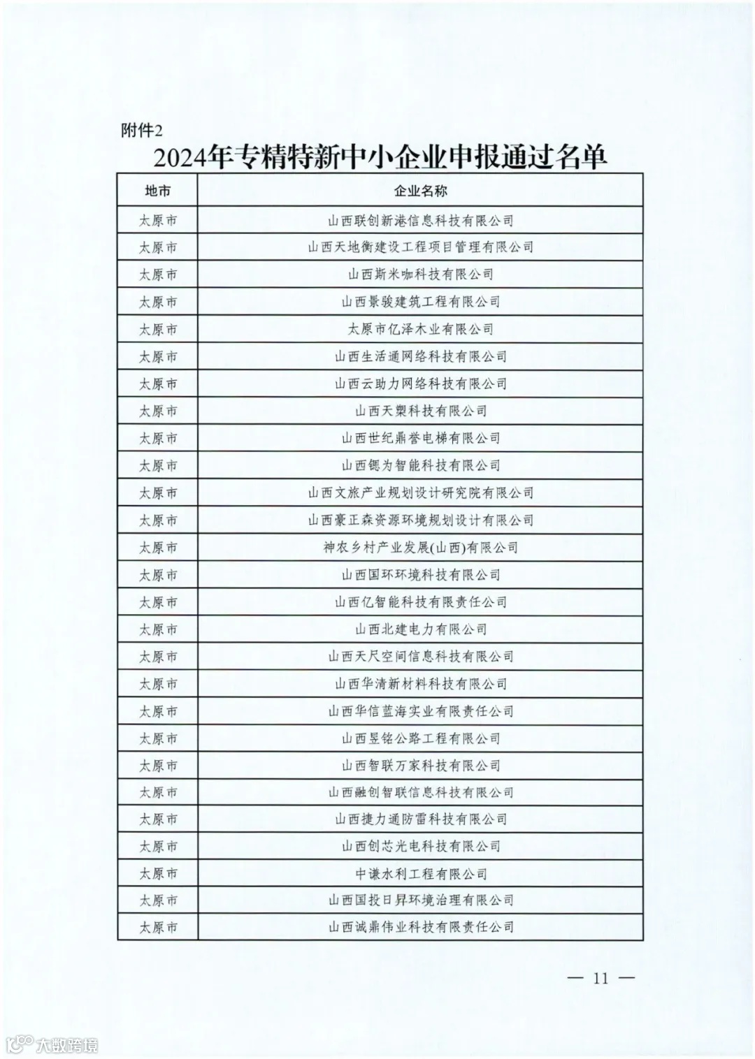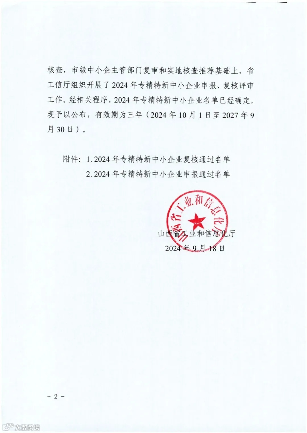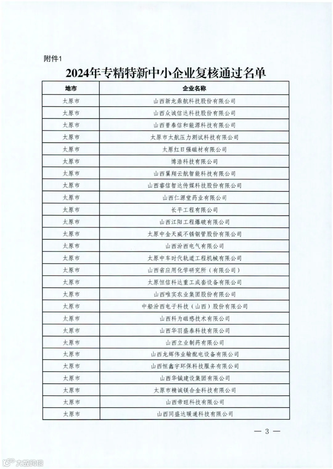 山西省工业和信息化厅关于公布2024年专精特新中小企业申报、复核通过名单的通知