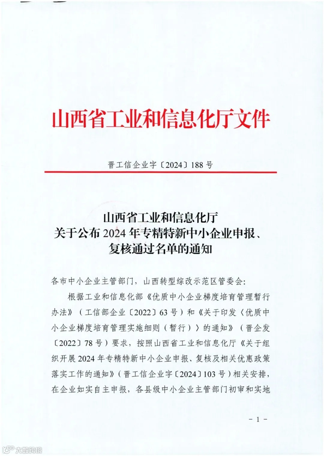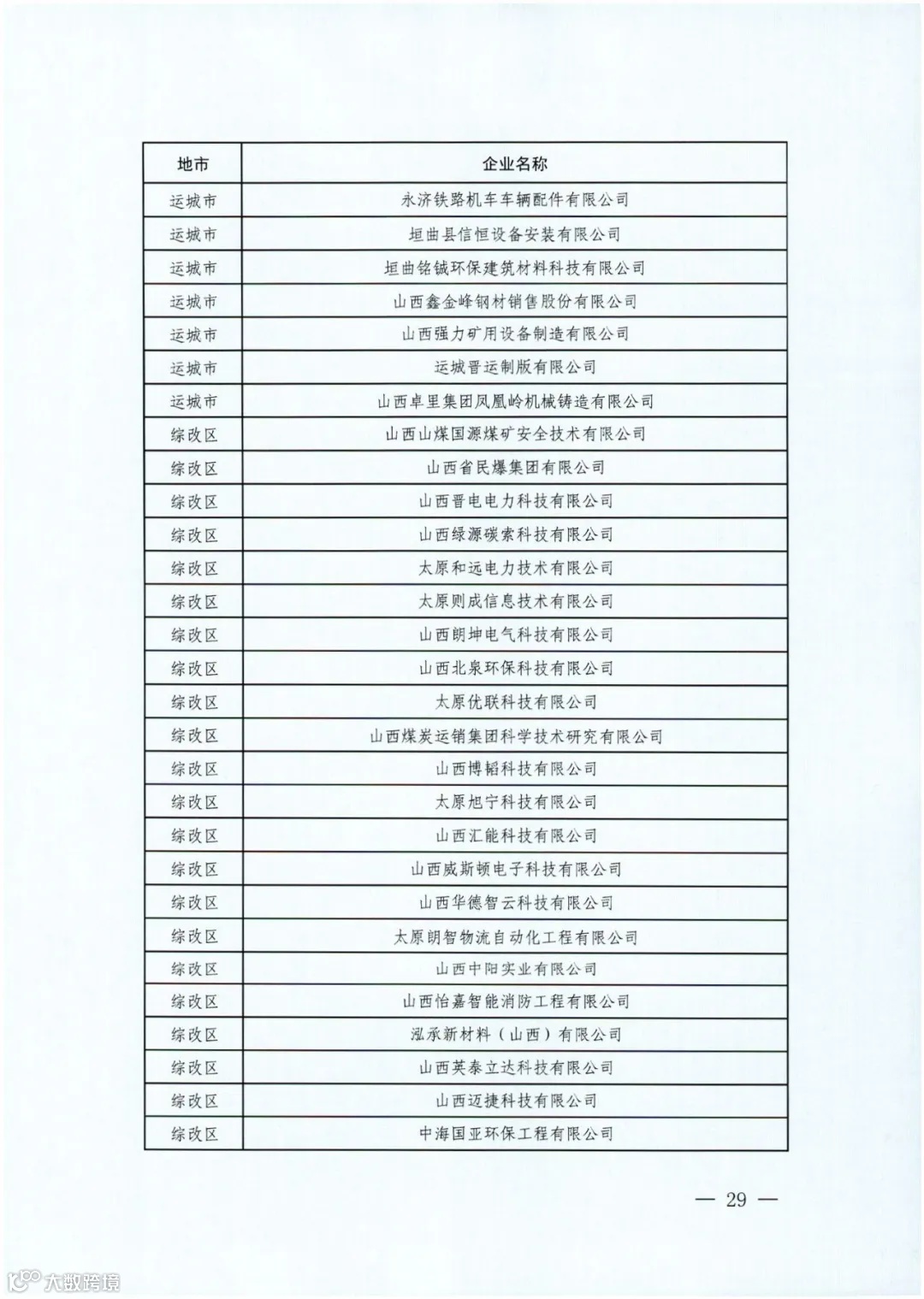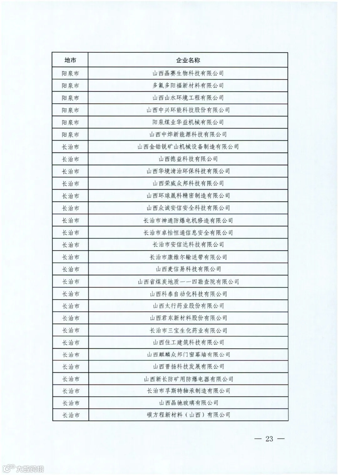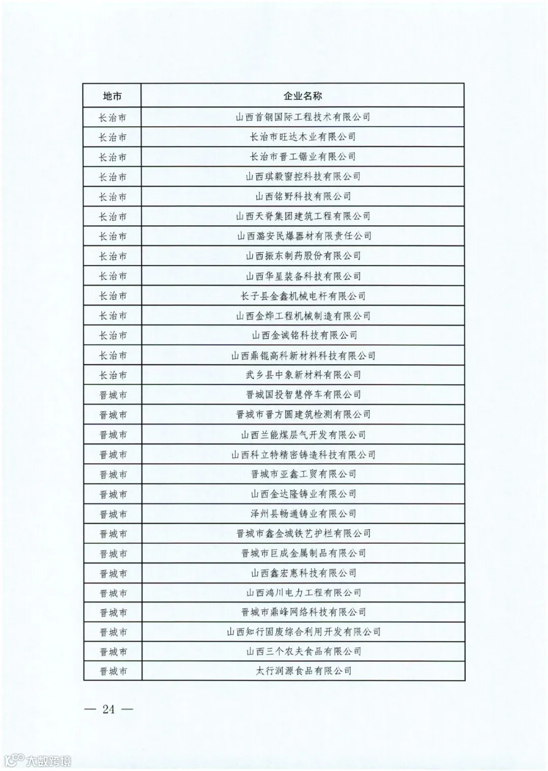 山西省工业和信息化厅关于公布2024年专精特新中小企业申报、复核通过名单的通知