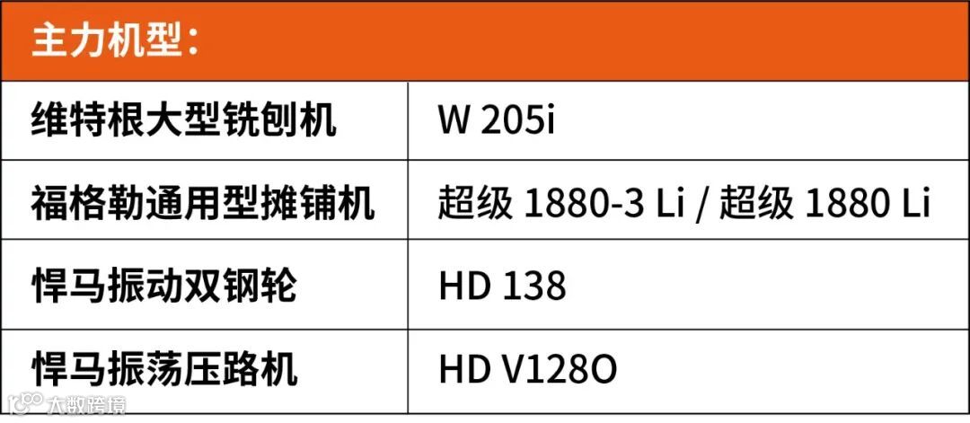 这对于施工团队以及施工设备的稳定性、性能都提出了巨大的考验。施工方经过精心计划和周密组织,调派充足的人员,选用了维特根铣刨机、福格勒摊铺机、悍马压路机共计 20 余台设备作为主力施工设备进行组合作业。