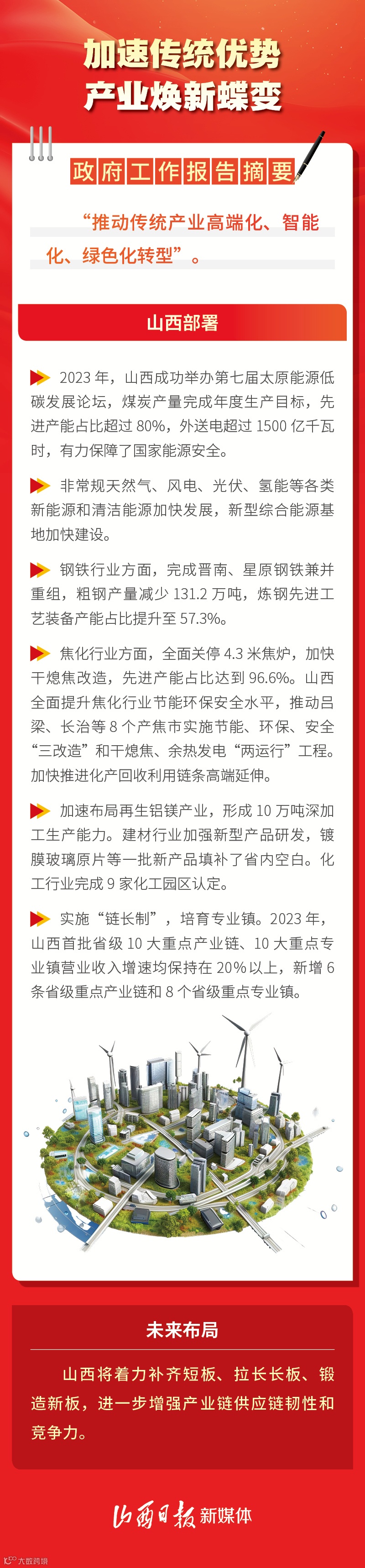 今年政府工作报告强调,要大力推进现代化产业体系建设,加快发展新质生产力,为山西进一步加快高质量发展、深化全方位转型明确了方向。