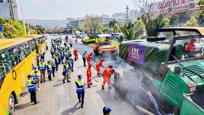 在活动期间,与会者还观摩了高韧超薄沥青摊铺技术对市政道路实现矫正性养护的应用。超薄磨耗层系统是一种针对交通负载大、路面性能要求高的养护解决方案。