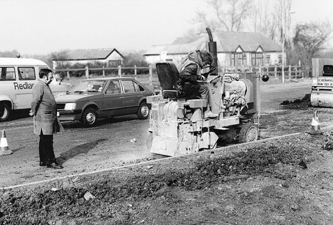 在道路铣刨技术出现之前,自20世纪60年代起,人们需要使用混凝土破碎机(如上图)来破碎旧路面,由此产生的路面破碎材料还需要费时费力地挖掘运走;这种工艺,不能精准地控制破碎刨除路面的深度,所以,不可能对个别受损区域进行专门修补,这使得路面维修的效率低下。