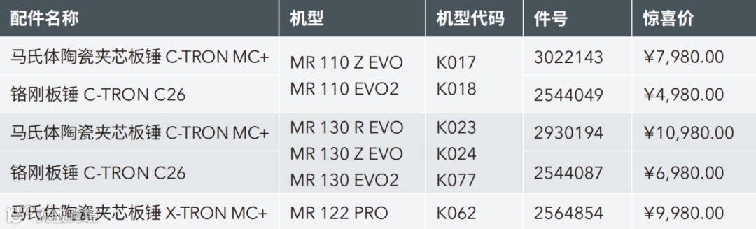 我们深知,每一个细节都关乎着项目的进度和质量。克磊镘原厂设备配件,耐用可靠、品质纯正,延长设备寿命的同时,还可以确保设备处于良好状态,为工程保驾护航。此次克磊镘易损件促销范围包括克磊镘原厂颚破颚板、反击破板锤、圆锥破锥套。特别折扣帮您节省成本,还能享有原厂品质保障。心动不如行动,快来为您的爱车选购吧!