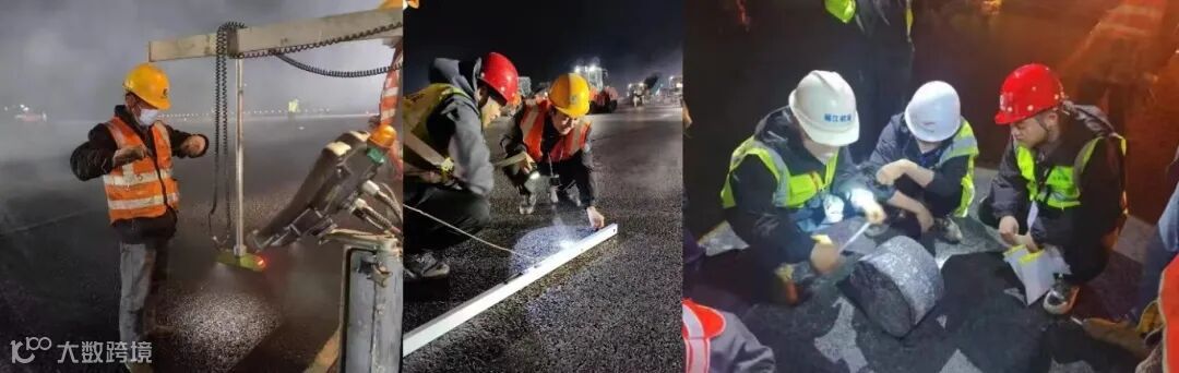 在施工现场,项目团队成员对设备的技术参数进行精确控制,对摊铺层表面平整度、密实度等指标进行全面检测。
