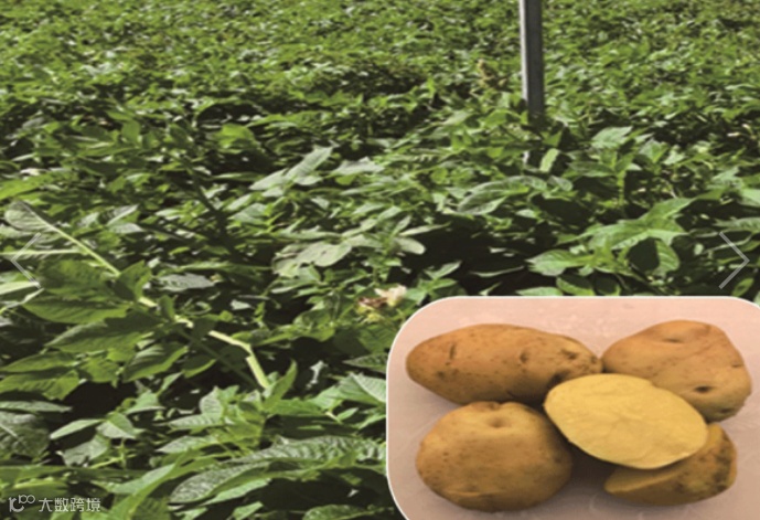 中晚熟品种,生育期105天,株高80厘米左右,生长势强,薯型椭圆,黄皮黄肉,个头中等,芽眼很浅,一致性好,干物质较高,耐储性好。亩产2800公斤以上。