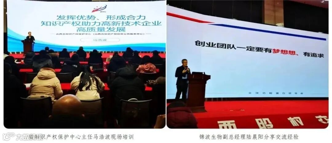 省知识产权保护中心主任马浩波做了《发挥优势、形成合力,知识产权主力高新技术企业高质量发展》的培训,重点围绕知识产权的申请、保护及运用实操进行了讲解。锦波生物副总经理陆晨阳就企业创业、股改规范心得和登陆北交所上市经验进行了分享交流。巅峰创客众创空间、邮储银行分别围绕高企认定政策、科技型企业普惠