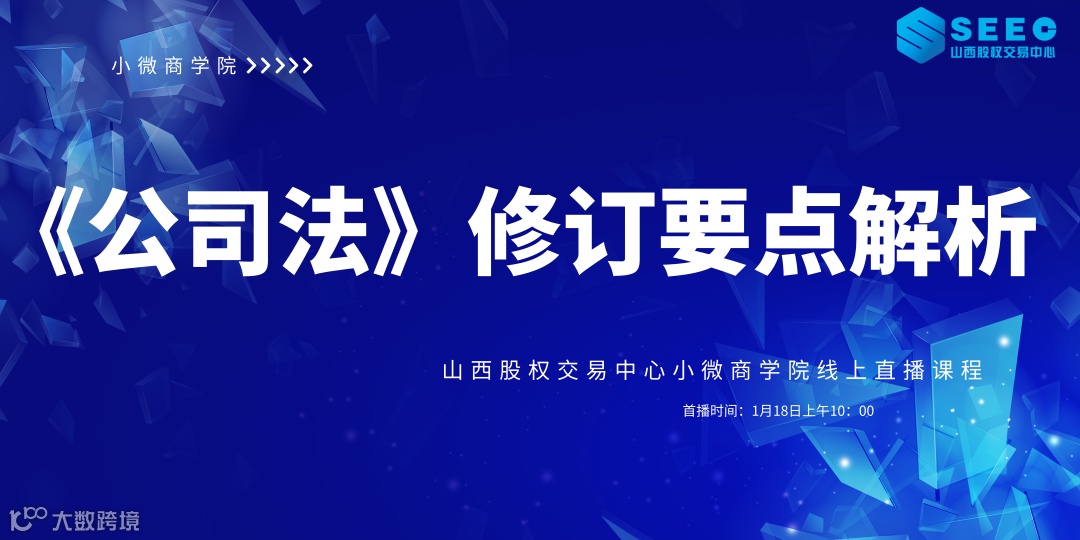 小微商学院线上课堂——《公司法》修订要点解析专题培训直播预告