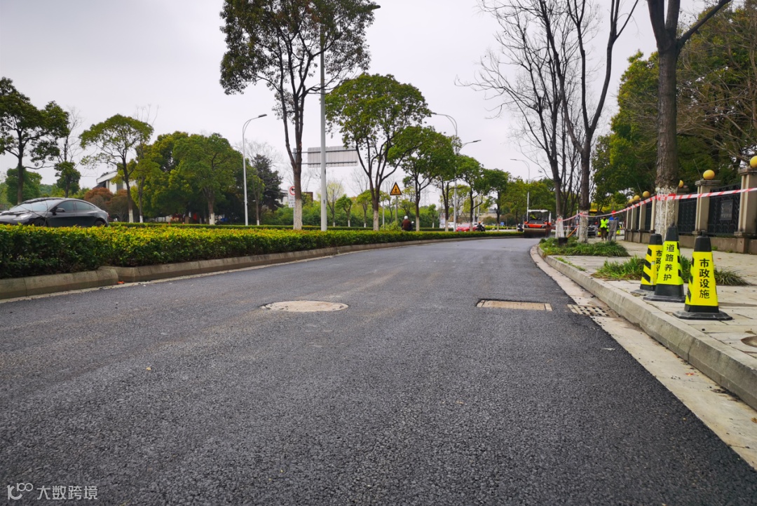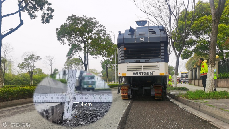 施工方苏州市市政设施管理处采用了铣刨移除 4 cm 旧沥青面层,根据需要对水稳基层的个别病害区域进行预处理后,在其上喷洒粘层油,其后再松铺 4.8 cm 厚度的新沥青混凝土材料,经压实后形成平整密实的沥青面层,实现保持原有路面标高不变。