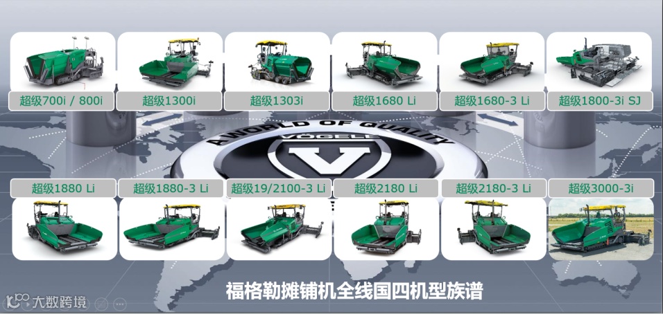 截止目前,维特根集团为满足中国市场需求推出的福格勒(VӦGELE)国四排放新一代机型包括了小型摊铺机、紧凑型摊铺机、通用型摊铺机、大型摊铺机和超大宽度摊铺机等10余款机型,覆盖了 0.5 m-18 m 的全应用摊铺宽度。