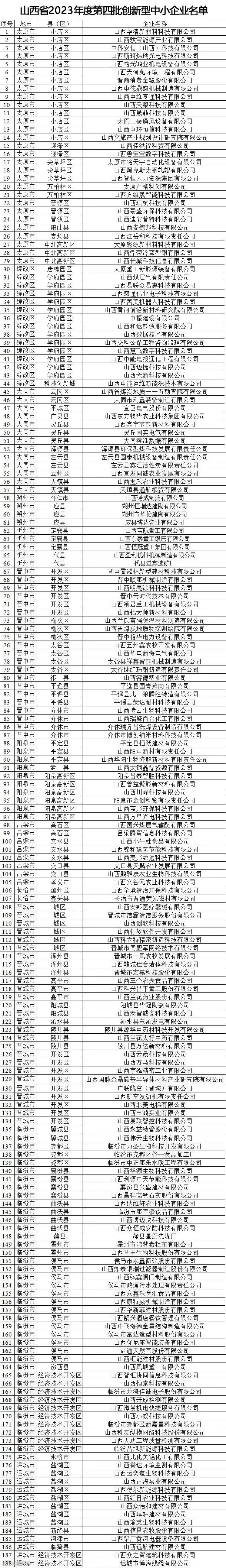 近日,省小企业发展促进局发布通知,公布山西华清新材料科技有限公司等188户企业为2023年度第四批创新型中小企业,有效期三年(2023年12月5日至2026年12月4日)。