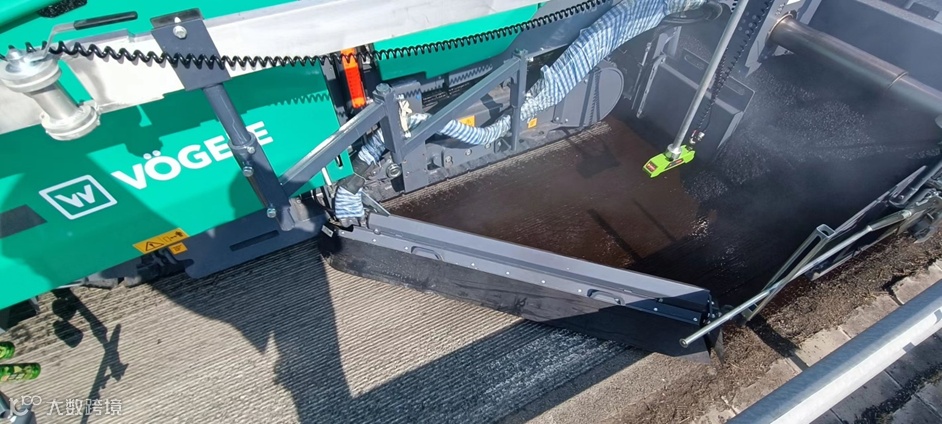 为避免单机摊铺带来的冷接缝问题,施工单位采用两台带喷洒模块的福格勒超级 1800-3 SJ 双机联铺的方案进行同步喷洒超薄摊铺施工。