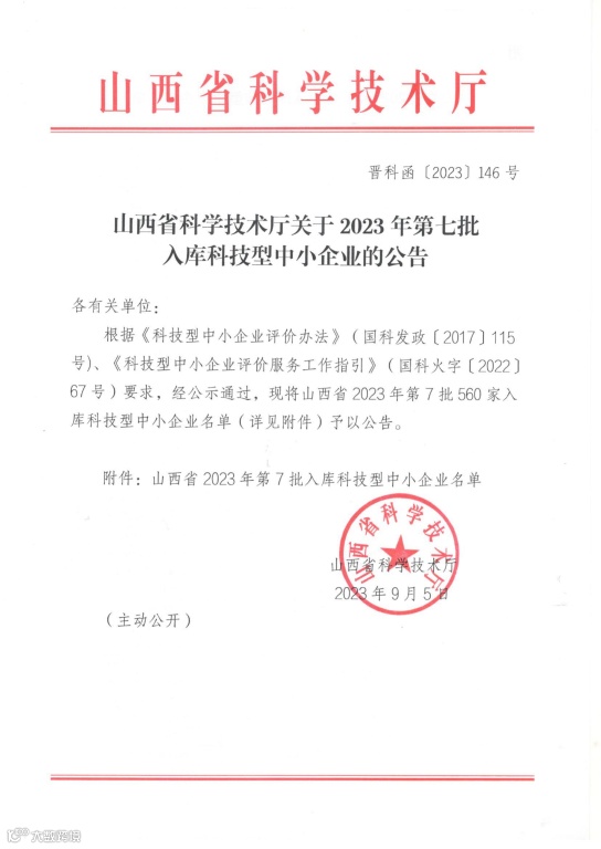 山西股权交易中心成功被认定为2023年山西省科技型中小企业