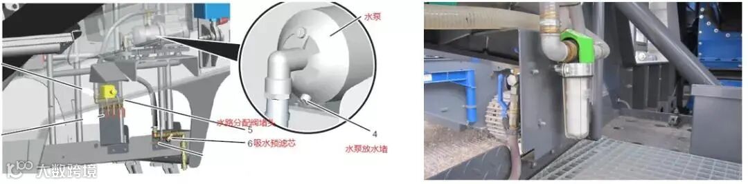 4. 拆卸洒水主滤芯,并进行放水处理;