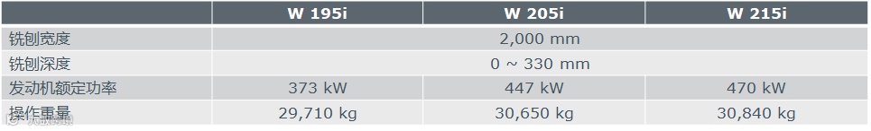 除了 W 205i, 维特根全线 “国四” 大型铣刨机系列共有三款机型:
