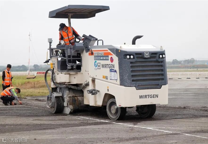 细节决定品质,值得一提的是,在此次项目中,还特别使用了维特根 W 100 HAS 铣刨机,专门用于机场跑道灯光系统维护用的特殊应用机型。通过这一国内首款针对机场跑道停机坪类大修项目特殊应用需求的设备,可以高效地实现对道面完成宽度约 10 cm ,深度约 10-15 cm的开槽作业。通过这一机械化作业方式,整体作业效率和施工安全性都大大提升。
