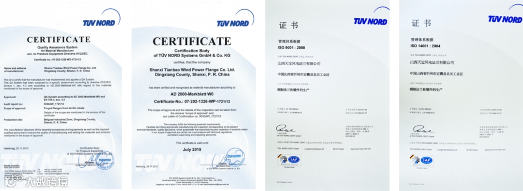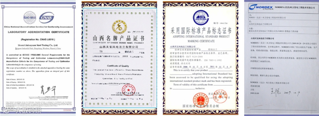 公司始终坚持“以诚信为基石,以客户为轴心,以品质赢市场”的经营理念,以“学习、超越、领先”的企业精神,先后取得了ISO9001质量认证、ISO14001环境认证、OHSAS18001职业健康安全认证,CE认证、PED/AD认证、PCCC产品认证、特种设备制造许可证、FRANCE BV工厂认证,理化室通过CNAS认证,CMA计量认证,2011年初公司通过Gamesa审核认证,成为其塔筒法兰合格供应商,为产品走出国门打下坚实的基础。其自主研发生产的制动盘和门框法兰等26项已取得国家专利。放眼世界,展望未来,公司愿与海内外客商携手共赢,共同发展,共创美好未来。