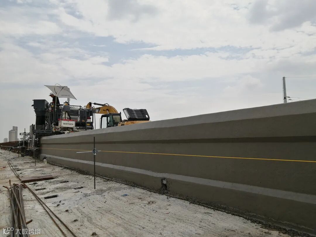 通过维特根机械化滑模摊铺技术铺筑的防撞墙,避免了人工铺筑容易出现的外观色差和密实度不够等问题,成品线性好,稳定性强,同时也最大程度减少了材料的损耗。