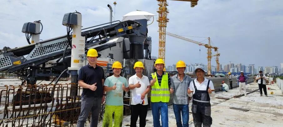 施工方河南豫永公司有着多年的水泥混凝土结构物的施工经验,团队中的技术人员对滑模摊铺机和水泥混凝土及施工工艺有着深刻的理解和掌握。工地负责人评价说:“维特根的 SP 15 摊铺机设计理念先进,性能稳定,特别是智能型电子转向和高程控制系统非常精准和灵敏,可以确保高精度的混凝土摊铺效果。”此次高架桥上通过滑模摊铺方式铺出的防撞墙,施工效果令人非常满意,也受到了业主和监理的一致认可。
