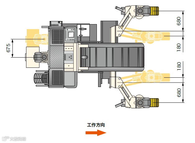 得益于维特根 SP 15 合理的设计, 灵巧的结构和精确的控制系统,其中三条履带可以自由摆动,灵活就位,对于较大的结构物, SP 15 可以把前面的两条履带向两侧张开,同时把后履带移向模具一侧,使得机器的整体稳定性得到提高。这也保证了机器在摊铺如防撞墙这样结构物,携带较大尺寸模具的情况下,正常平稳地行驶。