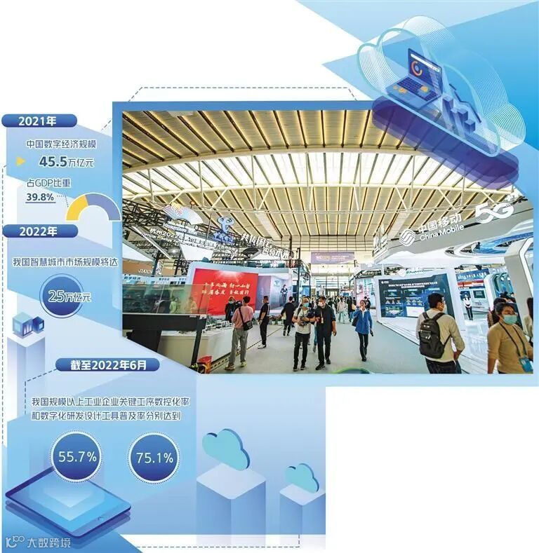 2022》显示,2021年中国数字经济规模达到45.5万亿元,占GDP的比重达到39.8%。我国加速推动信息基础设施建设,做强做优做大数字经济,提升数字政府效能,提高公共