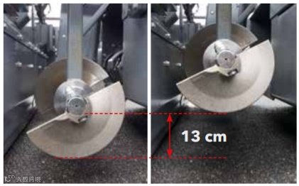 解释:搅龙高度调节幅度可达 13 cm,确保整个摊铺宽度上材料的均匀分布。