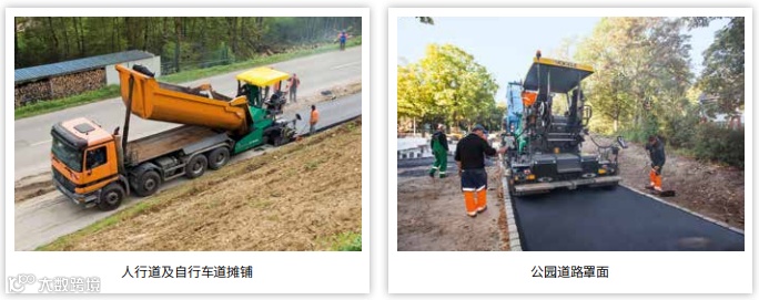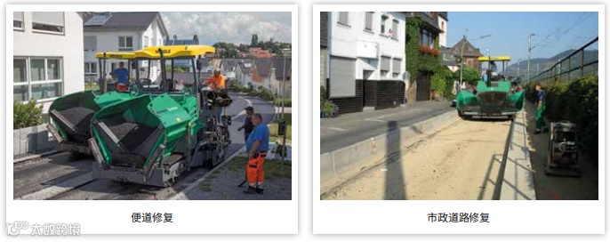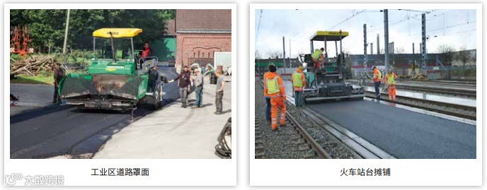 此处列举的应用都是福格勒紧凑型摊铺机的典型应用,图里可能也有老款机型。
