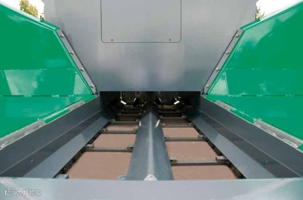 搅龙通道挡料板,便于宽度在 2.6 m 到 4.2 m范围内变化时快速设置,而且不必拆装部件。