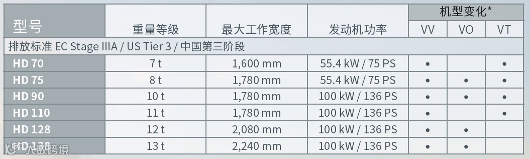 HD 系列铰接式双钢轮压路机型号一览