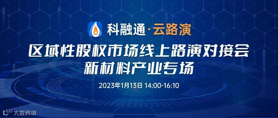 为进一步发挥区域性股权市场服务中小企业融资发展的功能作用,创新区域性股权市场区块链应用场景,科融通V-Next路演服务现已在区域性股权市场监管链赋能服务平台正式上线,首场新材料产业专场活动将于2023年1月13日以线上形式举办。