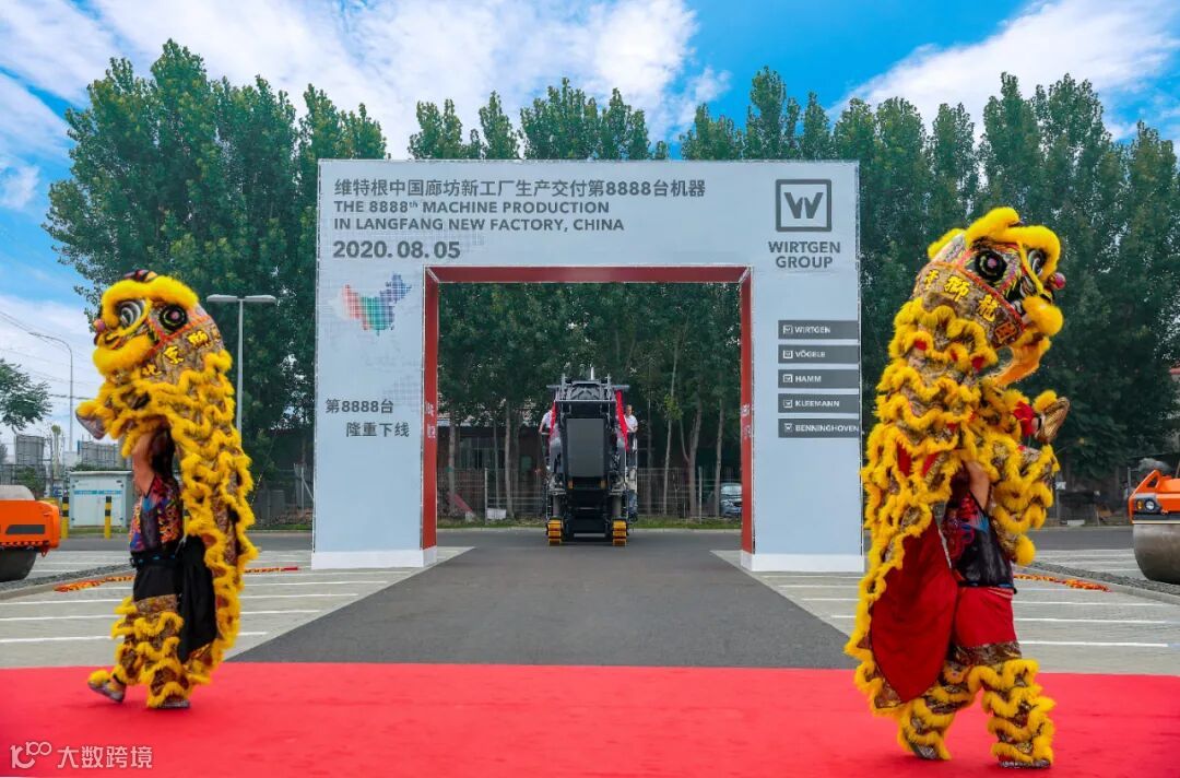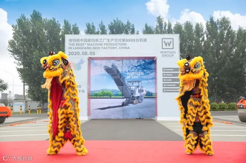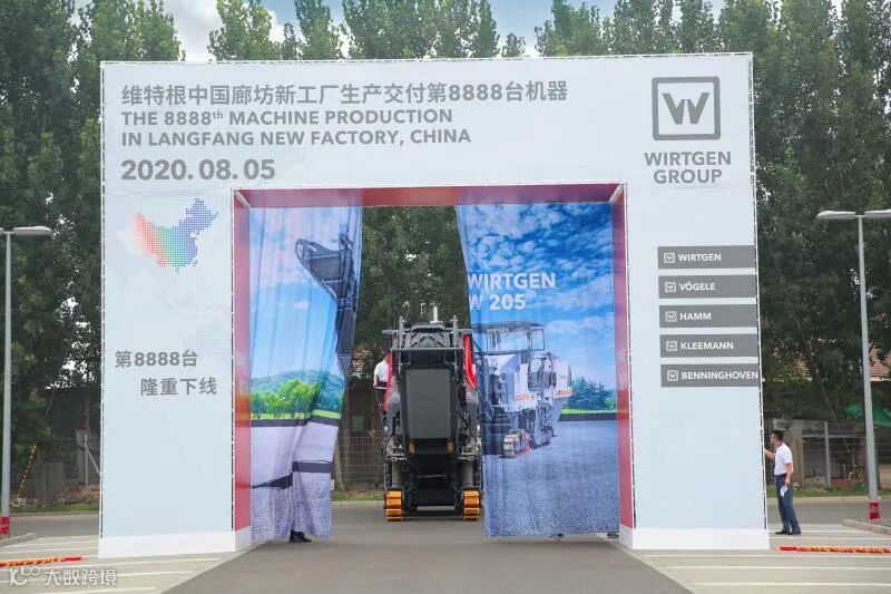 2020年8月5日 ,维特根中国廊坊新工厂欢声雷动,载着维特根中国总裁兼董事总经理Ulrich Reichert(韦策图) 与首席运营官 Carl Doering的维特根新一代2米档铣刨机W 205从生产线缓缓驶入仪式现场,这标志着由维特根中国廊坊新工厂生产的第8888台设备正式下线交付。红毯载荣誉、舞狮展风采,在欢庆声中,工厂的全体员工集体见证了这一历史时刻。