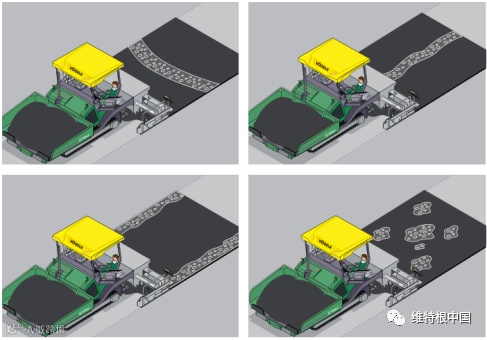 除此之外,还应该尽量减少对料斗壁的操作,以减少大粒径骨料从侧面被装送至熨平板前,造成离析。仅允许在料斗壁处的摊铺料温度降低过快,即将不适合摊铺的情况下进行闭合料斗壁的操作。