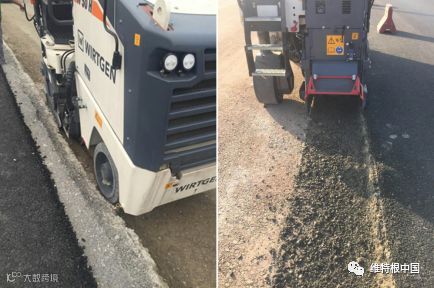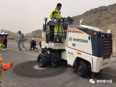 维特根 W 55 H 铣刨机配输料皮带,施工效率更高。与维特根 2 台大型铣刨机配合施工,昼夜不停,1 个月内共完成 40 万平米的沥青混凝土铣刨及摊铺作业。
