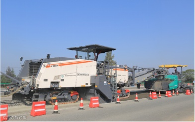 与之匹配的摊铺机具有很大的材料输送能力,故原路面材料的不均匀性得以消除,并可以铺筑出良好的横断面
