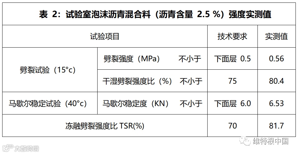 另外,由于泡沫沥青混合料特殊的裹附结构形式,材料对温度敏感度较低,其结构层具有较强的应力扩散能力,从而减缓路面基层裂纹的反射,使维修后路面具有更长的寿命。
