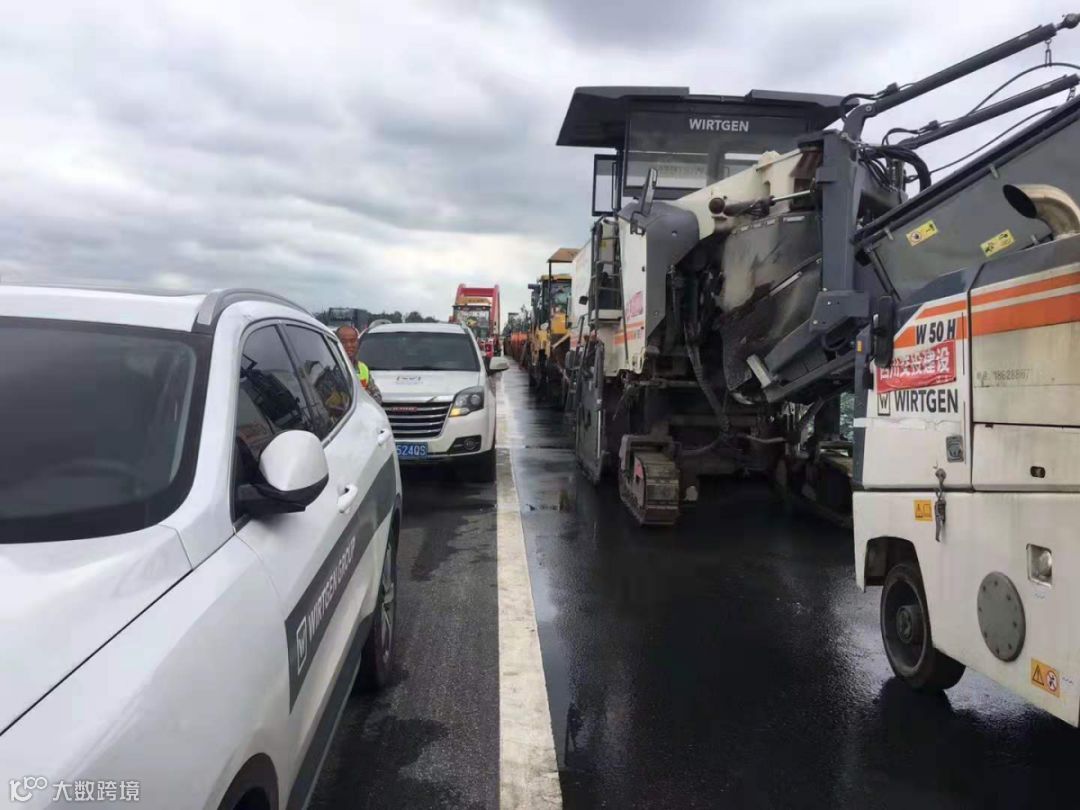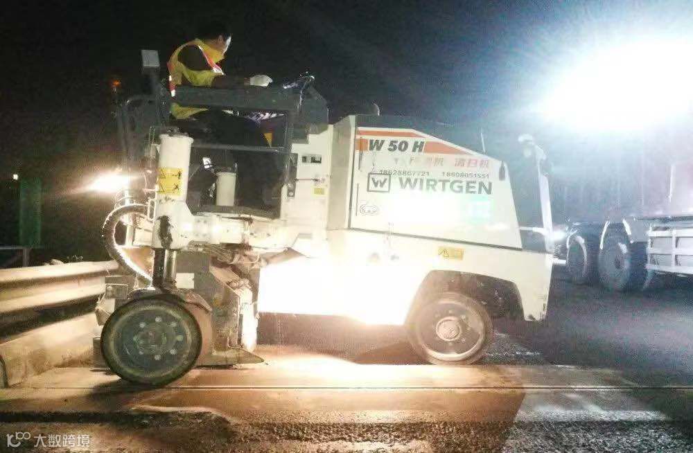 由于施工任务重,每日施工时间短,对设备的施工效率和可靠性要求自然就高。为保障工程高质量、高标准达到业主单位要求,施工方每晚10点即组织设备进入施工作业面,先由两个铣刨班组对施工作业面进行挖补、清扫作业;据施工方四川向通建设工程有限责任公司项目经理刘满成介绍,铣刨班组每晚对路面病害先行铣刨,根据病害程度铣刨 4 cm、7 cm、9 cm 等深度,再对桥梁伸缩缝、接头处等进行预处理,为不影响后续摊铺作业面施工,铣刨机每日工作时间仅有2-3小时,因此对铣刨机性能及稳定性提出了非常高的要求;为保障施工质量和进度,施工方经多番考察、研究,最终采用在铣刨机领域广受赞誉的维特根品牌大型铣刨机 W 195、W 205 及小型铣刨机 W 50 H 等共计8台铣刨机进行作业。