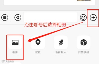 第二步:进入公众号里,点进下图红色框中的对话按钮(图4),然后点击加号,在下面的选择页面中点击相册(图5),进入相册后选择你要上传的图即可(图6)点击发送后,待上传成功后,可以在书写框中写出简要项目信息(图7):