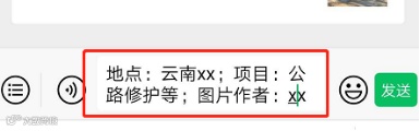 发送信息到公众号后台。后台提交信息包括:照片原图、图片拍摄地点或工地的简单描述。