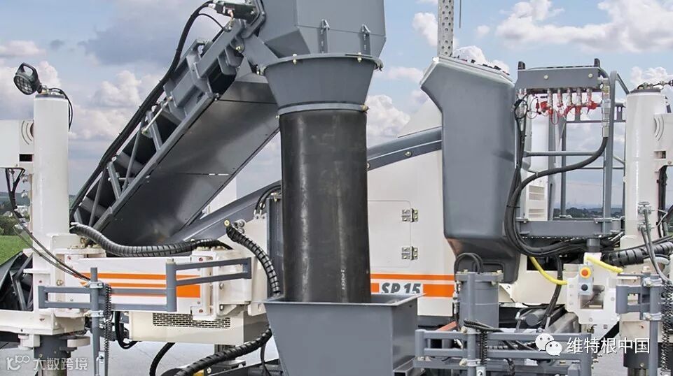 摊铺机可以配置输料皮带或输料螺旋,用于接收来自混凝土罐车的混合料,然后将其输送到滑模摊铺机中。