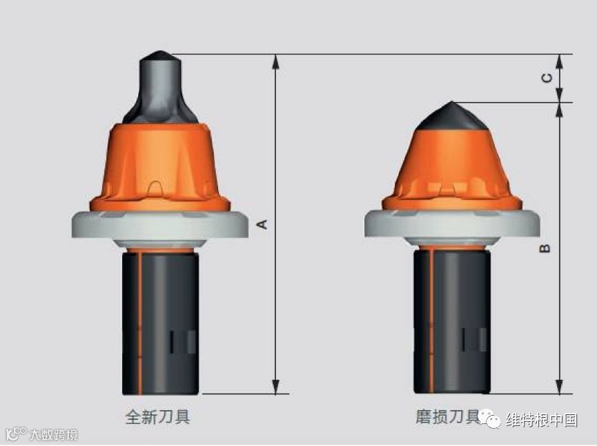 刀具的所有构成组件或多或少都会受到铣刨材料的磨损。一旦单个组件受损,如刀尖、钢质刀体、垫片或卡簧,则应更换整个刀具,以防损坏相对昂贵的刀座系统,而且刀座系统的更换也更加复杂。