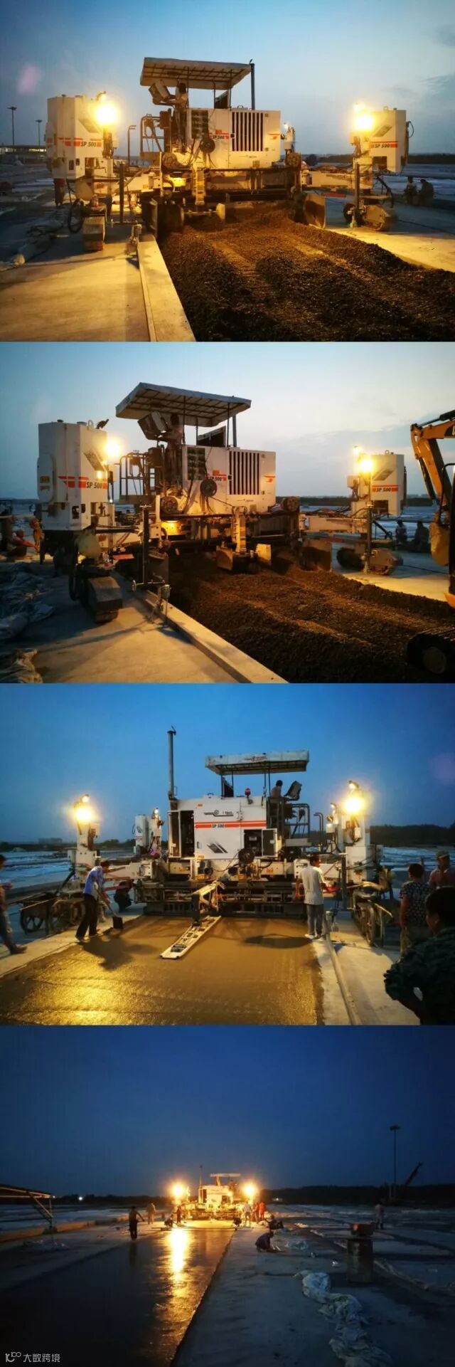 由于白天天气炎热,所以机手们在夜间也会照常进行施工。