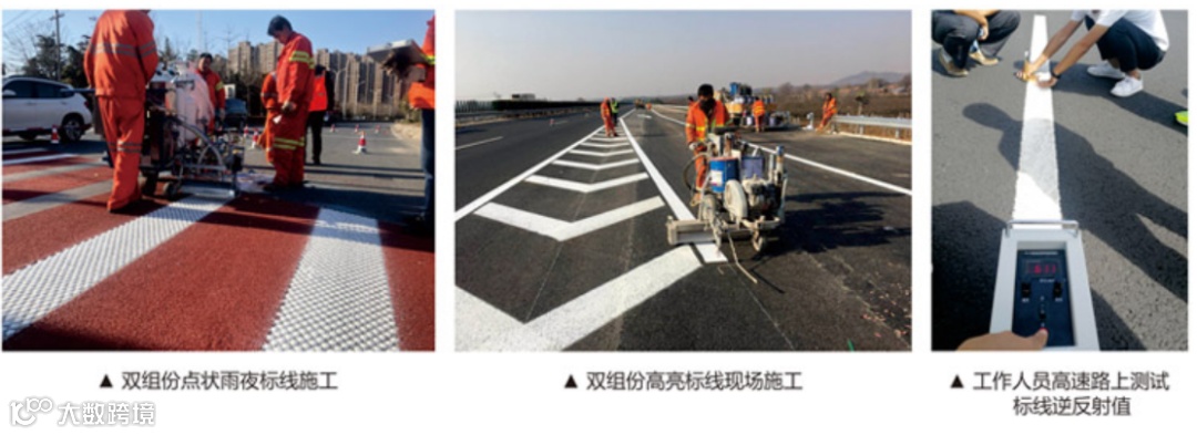 双组份道路标线涂料采用德国赢创工业集团(Evonik Industries)DEGAROUTE活性丙烯酸树脂,经多年实践开发出拥有自主知识产权和独特施工工法的专利产品。属于反应型标线涂料体系,即A、B两组份通过化学交联反应形成高分子聚合物涂膜,属于环境友好型标线涂料产品,具有超强更持久、醒目更生动、耐候更稳定、附着更优异、施工更便捷、适用更广泛、低碳更环保的特性。 通过对配方的调整获得特定功能的标线:双组份抗污标线、双组份高亮标线、双组份雨夜标线、双组份水泥路面专用标线、双组份防雪铲标线。按照施工方式可分为:喷涂型、刮涂型、结构型。 双组份抗污标线产品选用德国赢创公司特供DEGAROUTE道路标线特种树脂,优化涂料配方,采用本公司特有的双组份标线涂料专用技术,配方设计采用“双疏微表技术”,标线涂层引入“电荷相斥技术”,提高了涂层拒尘性能,长久保持高抗污性能,本产品获得专利证书。