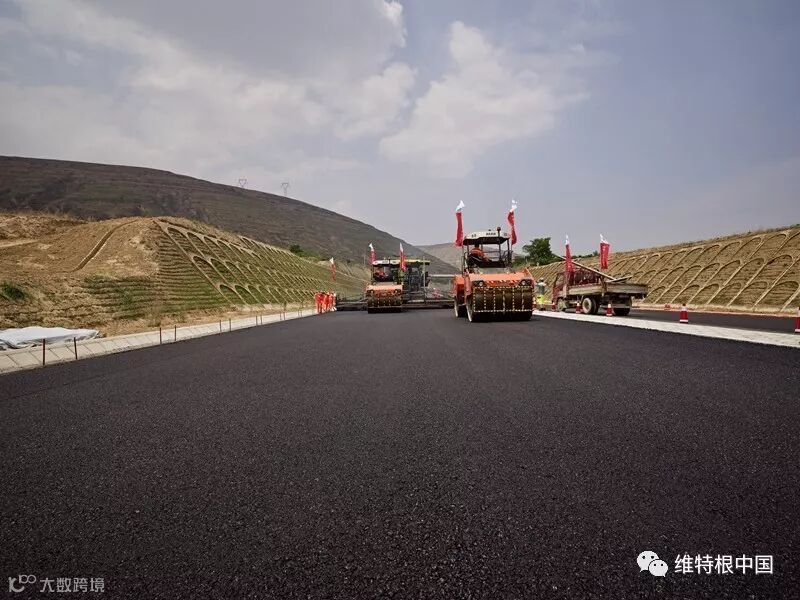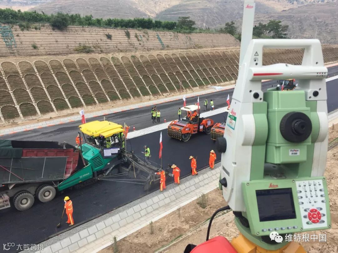 本次采用的3D自动控制系统引导福格勒(VÖGELE)摊铺机进行摊铺方式,优势尽显。首先,无需人工架设引导基准,而是采用全站仪引导进行标准数字化施工作业,在确保摊铺标高的同时兼顾了摊铺面的平顺性和平整度。另外,采用徕卡3D系统引导摊铺,可以对摊铺面的三维坐标数据进行实时监测和并收集施工质量数据,精准的控制施工,并保持现场的整洁,确保人员和机械设备的安全。