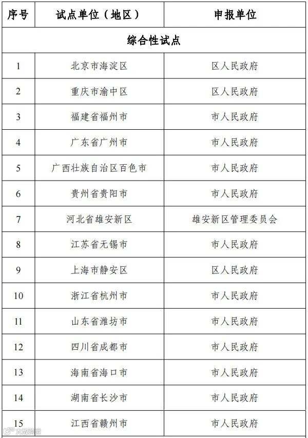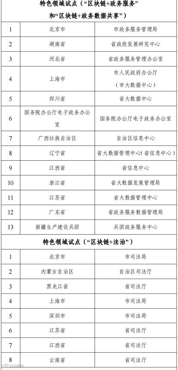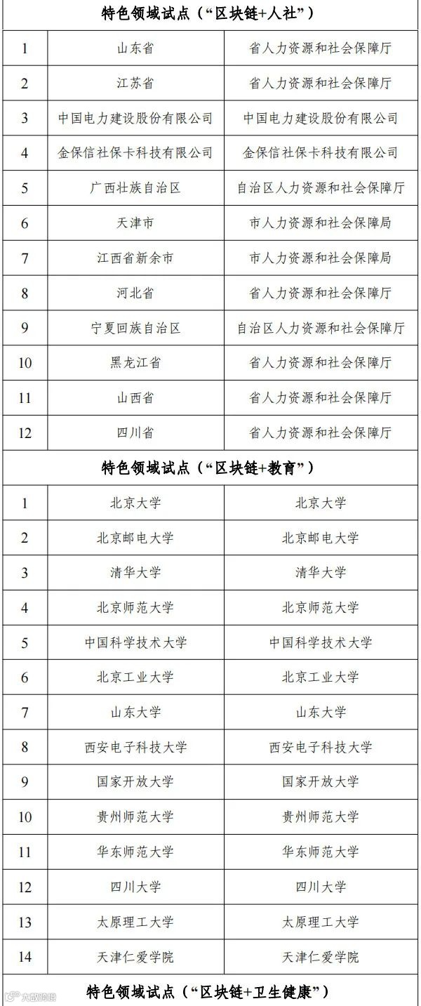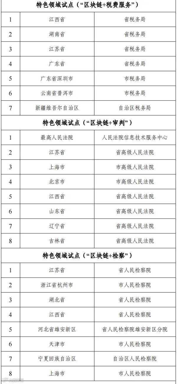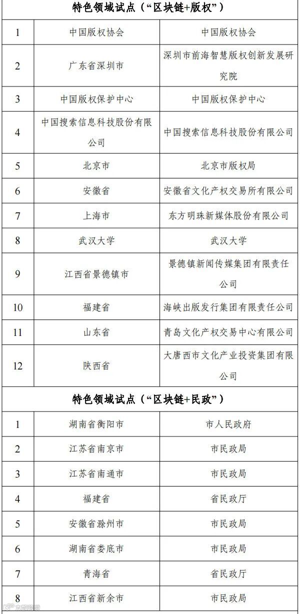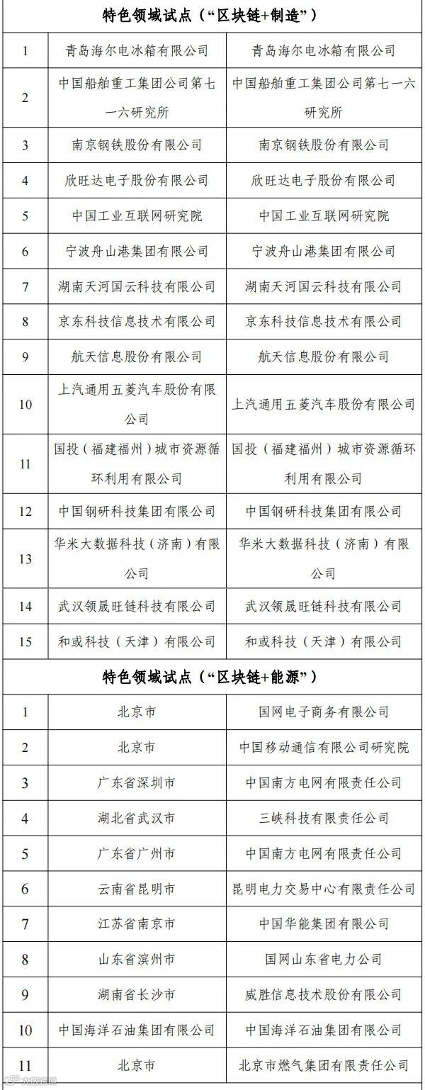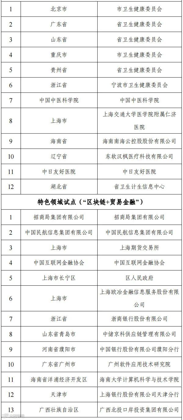 国家区块链创新应用试点名单如下: