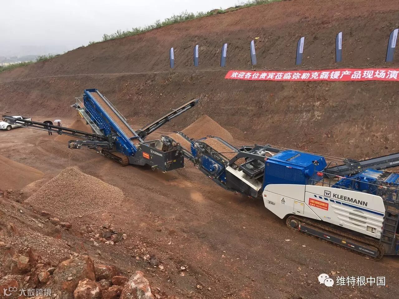 当天下午,与会客户实地观看了克磊镘移动破碎筛分设备——MOBIREX MR 130 Z 和 MOBISCREEN MS19 D 产品线在云南弥勒工业园进行破碎筛分生产的实地演示环节。