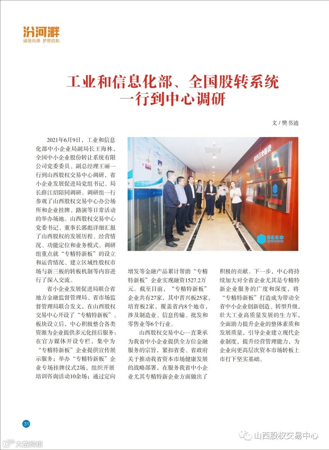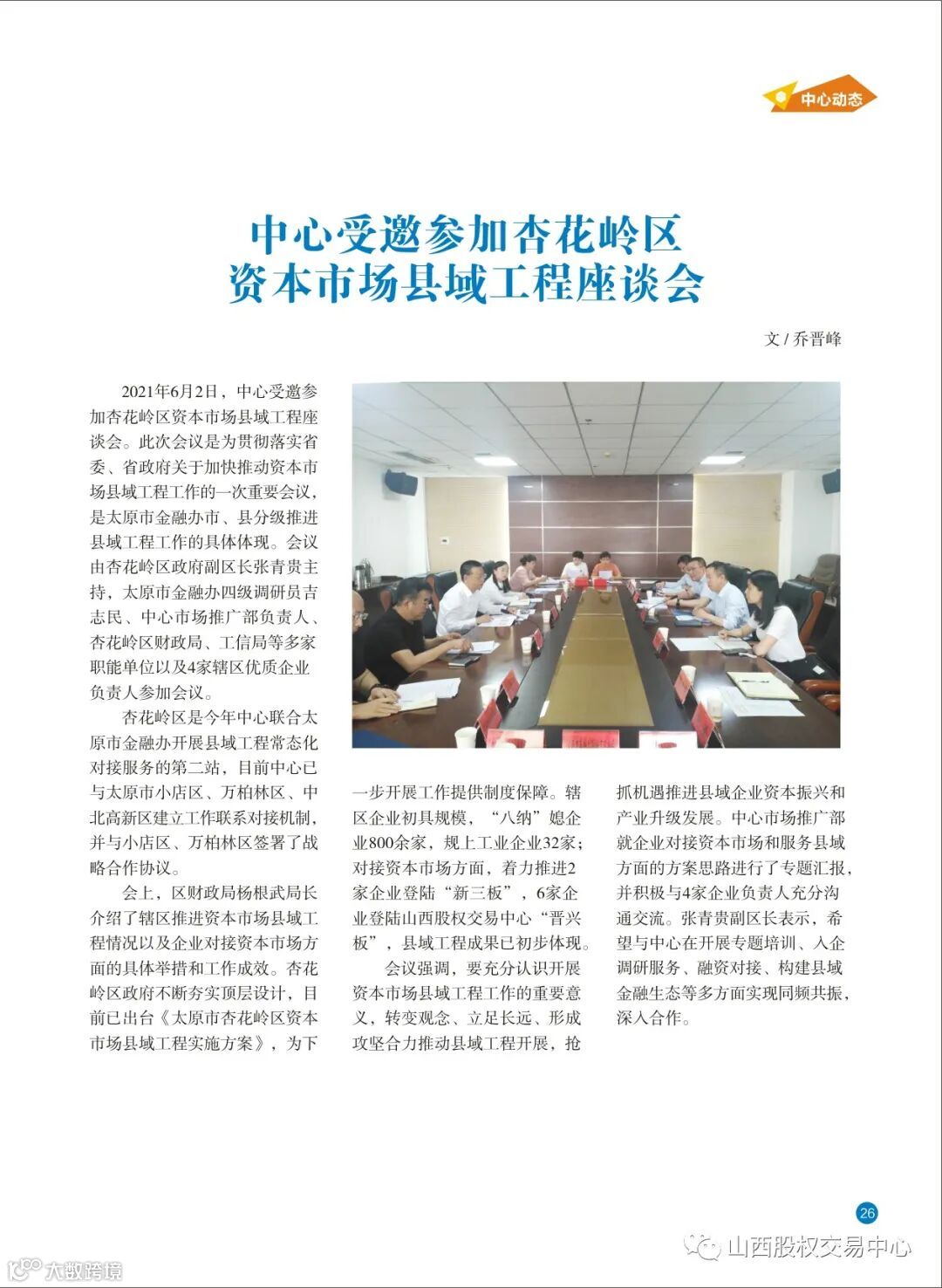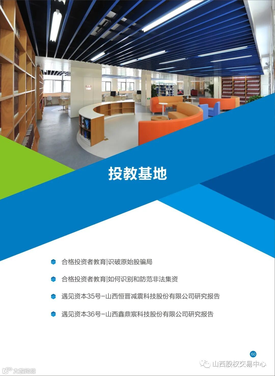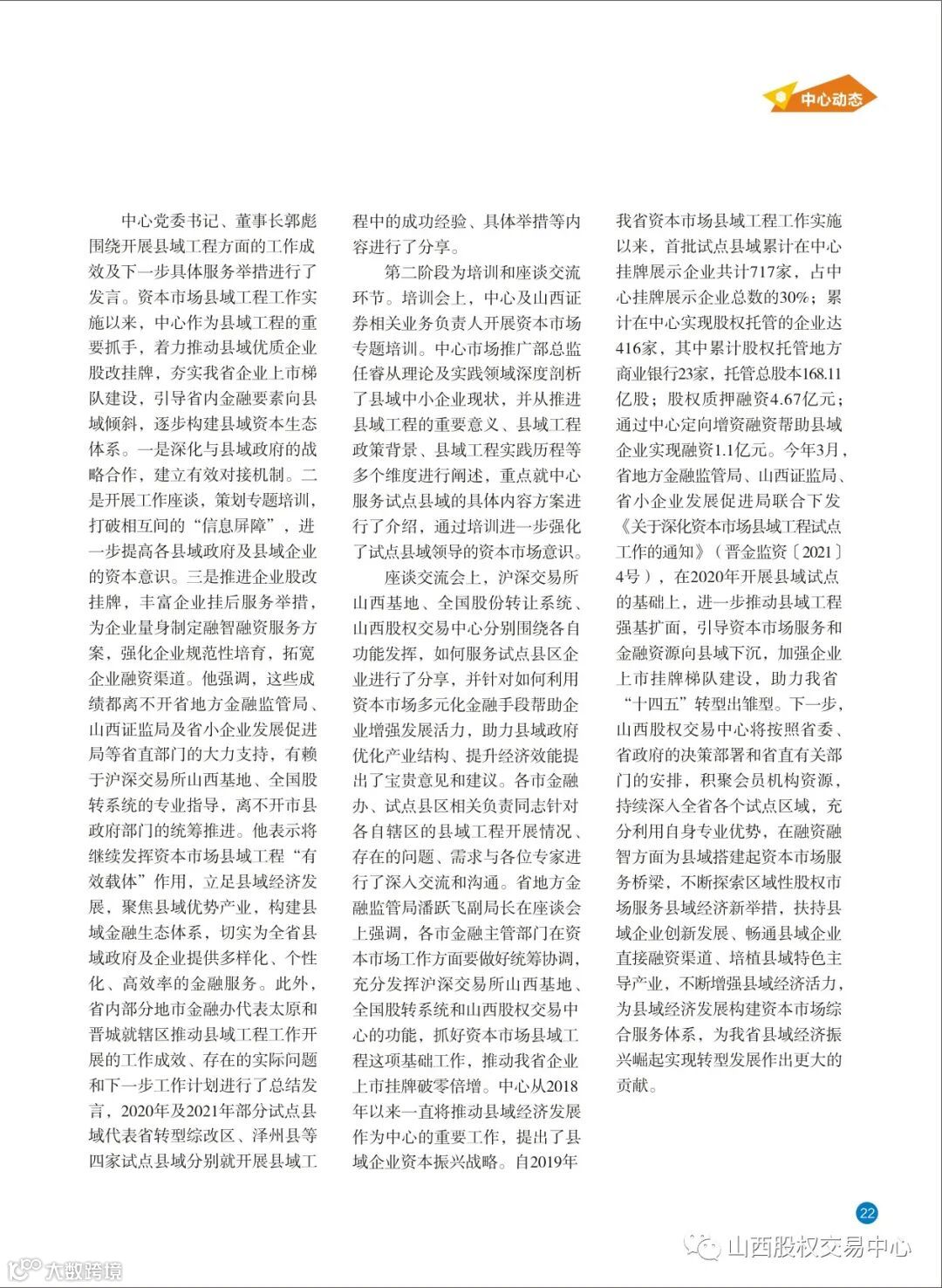 山西股权交易中心是经山西省人民政府批准设立的省内唯一的区域性股权市场运营主体,专注为省内中小微企业提供改制辅导、融资转让、财务顾问、信息咨询、管理培训、路演宣传、上市培育等全方位个性化金融服务,赋能地方实体经济和中小微企业高质量发展。