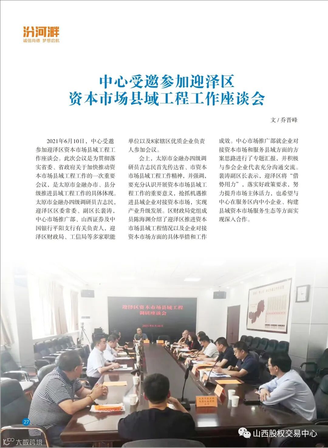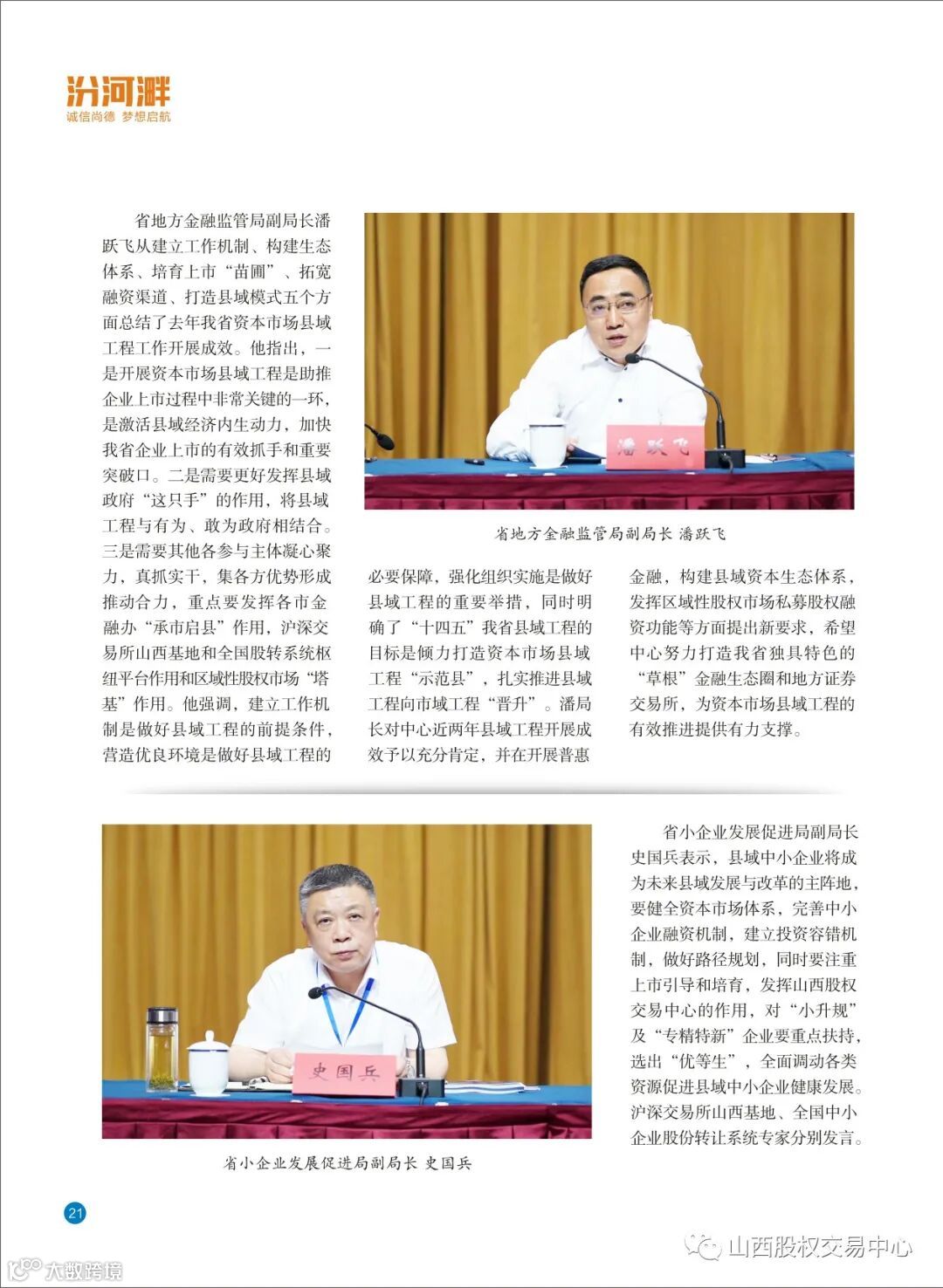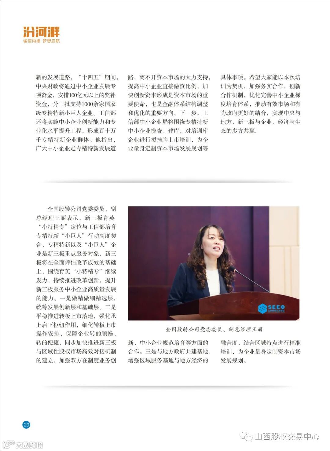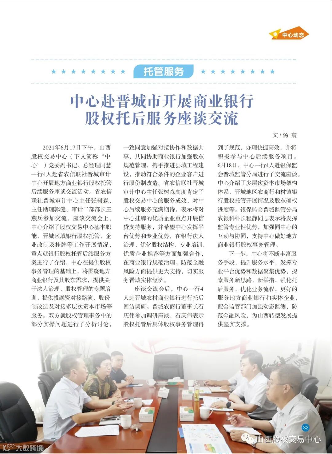 山西股权交易中心是经山西省人民政府批准设立的省内唯一的区域性股权市场运营主体,专注为省内中小微企业提供改制辅导、融资转让、财务顾问、信息咨询、管理培训、路演宣传、上市培育等全方位个性化金融服务,赋能地方实体经济和中小微企业高质量发展。