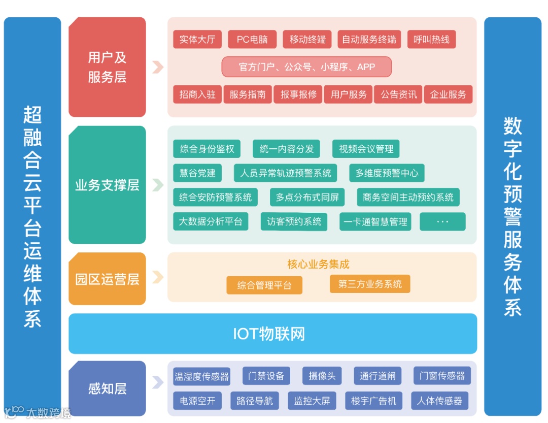 为了整体解决政府管理部门、园区管理方、园区企业、园区内从业人员等四类受众的不同需求,从“有利于政府服务和产业发展、有利于园区管理者的高效管理,有利于入园区企业的发展,有利于园区从业者的和谐共处和共同成长”的目标入手。充分利用物联网、大数据、移动互联网等新一代信息技术,以园区为核心,对内面向企业,管理连接企业形成供给侧。对外面向社会提供服务创造社会价值形成需求侧。为高新产业园区的智慧园区建设提供包括规划、设计、建设、运营等在内的一站式服务。