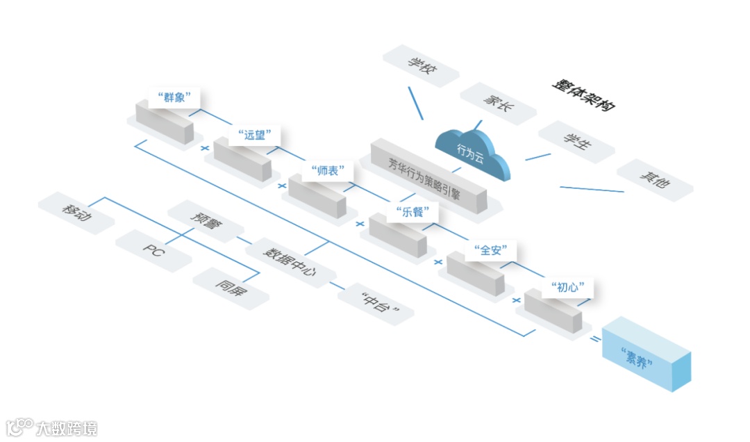 以学生行为数据的采集与分析为核心,通过智能行为分析引擎和六大特色鲜明的应用平台,全面改善校园安防、校园霸凌、智能校园管理、教育现代化与标准化、教育资源平衡、学生心理健康、餐食营养健康等校园薄弱环节。