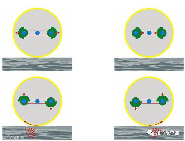 所谓振荡钢轮,是指振动质量旋转时,力矩改变方向(向前或向后),由此产生钢轮的振荡。在这个过程中,钢轮向土壤传递横向的作用力。
